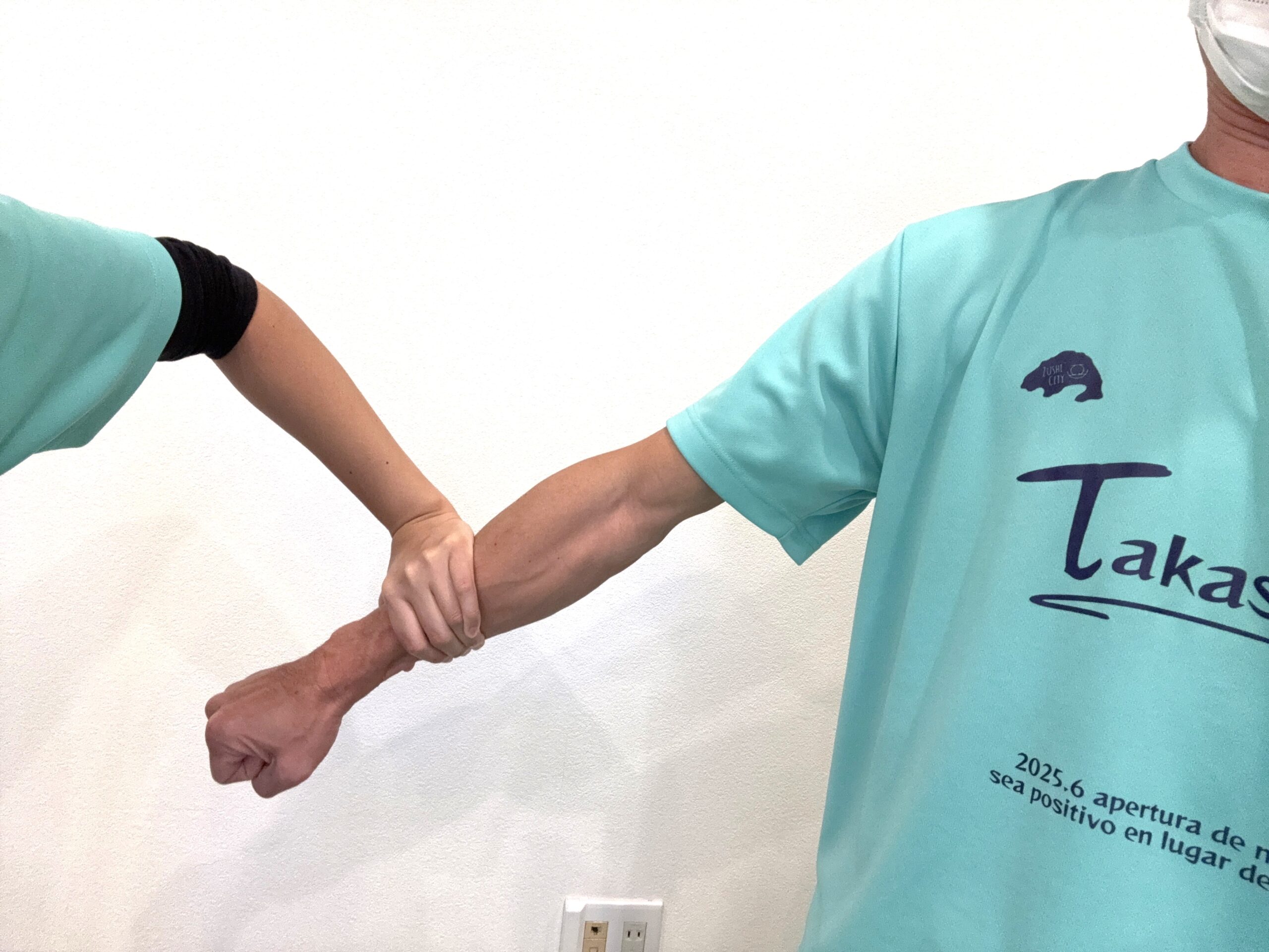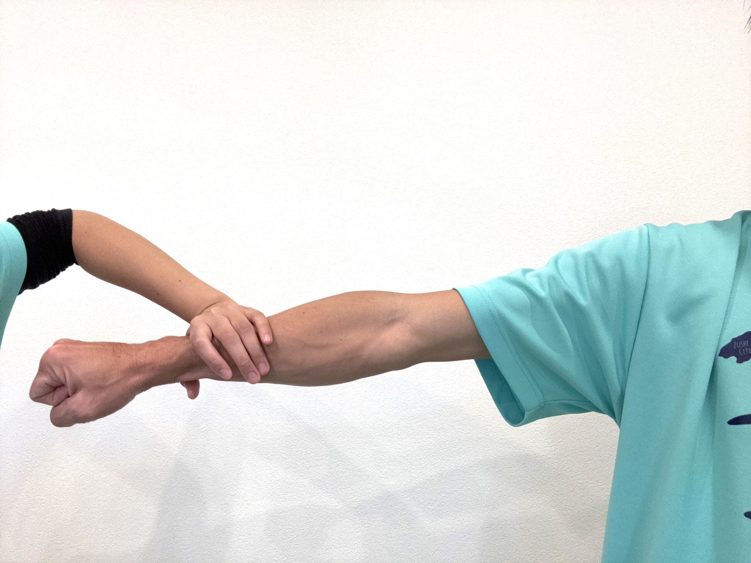 ① 腕を真っ直ぐ伸ばし常にグッと力を入れて、誰かにその腕を下へ押してもらってみて下さい。